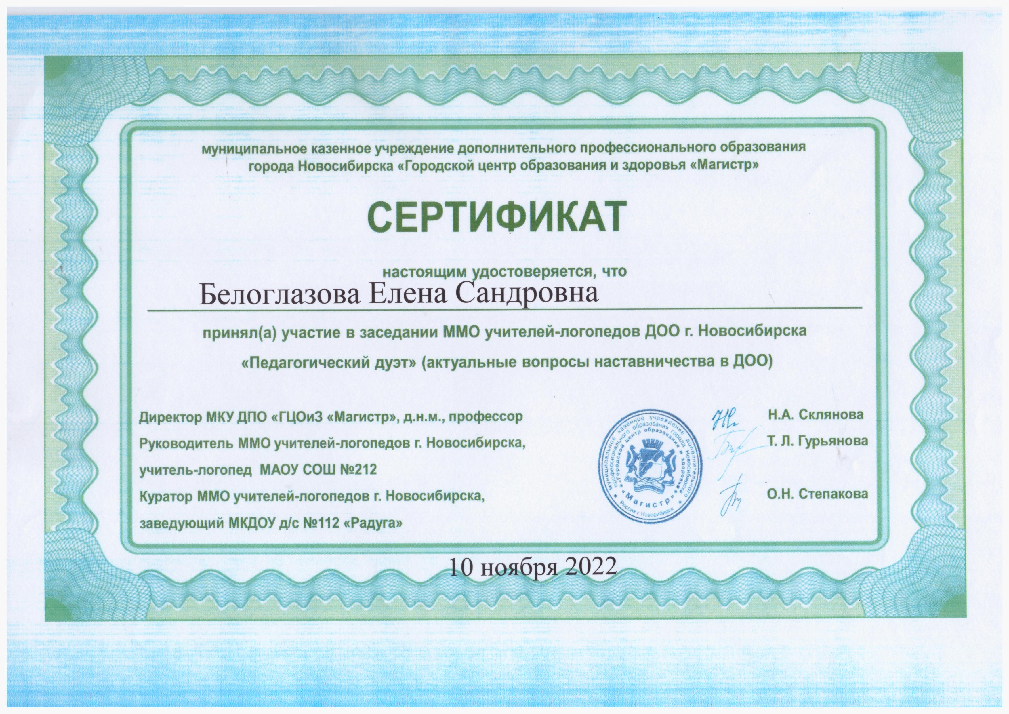 Методическое объединение учителей-логопедов г. Новосибирска по теме «Педагогический дуэт» (актуальные вопросы наставничества в ДОУ).